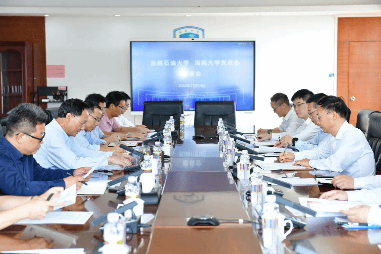 本站讯(记者 吴一峰 郑泽娇 江雨)11月14日上午,西南石油大学党委书记张烈辉一行访问beat365中文官方网站,并在办公楼501会议室进行交流座谈。beat365中文官方网站党委书记符宣国,校党委常委、副校长李步洪出席座谈会。座谈会由符宣国主持。