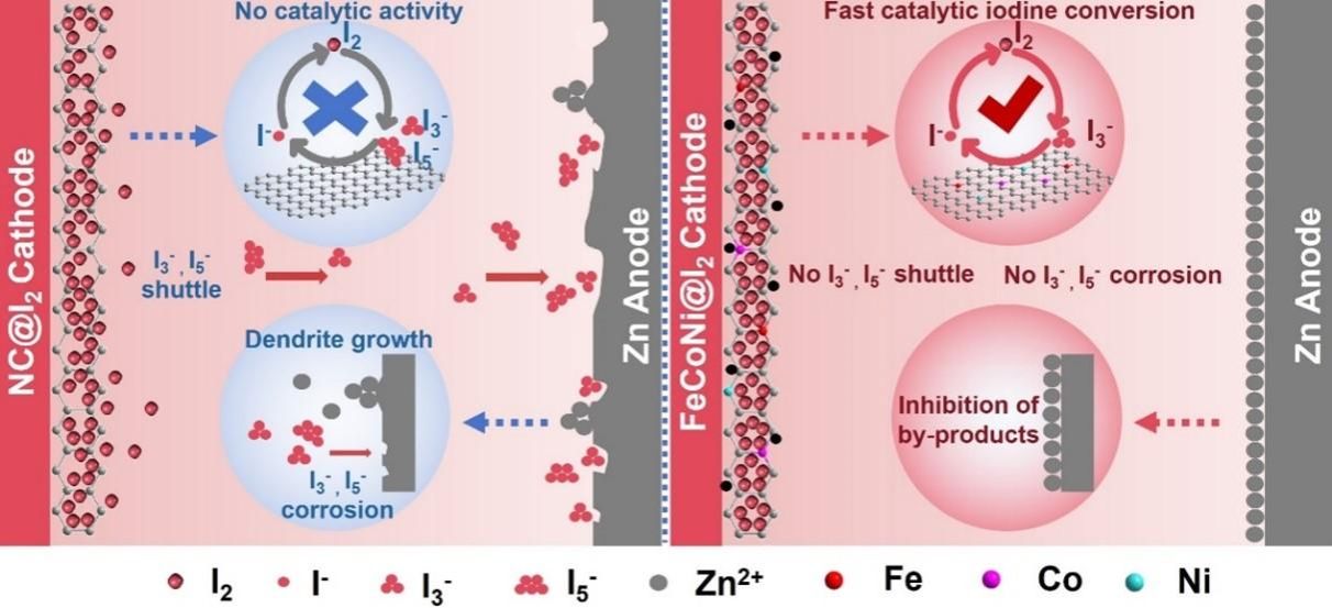 《中国科学报》(记者 温才妃 李思颖 梁淑仪)beat365中文官方网站海洋科学与工程学院副教授邢振月、史晓东和教授田新龙团队研究发现,将铁钴镍原子掺杂多孔碳催化剂作为功能载体材料可以推动水系锌碘电池循环稳定工作。12月19日,相关研究成果发表在《先进功能材料》上。铁钴镍原子掺杂多孔碳催化剂作为功能载体材料的作用机制示意图。课题组供图水系锌碘电池因其高安全性、高能量密度、低成本和环保属性而受到广泛关注。然而,活性碘溶解和多碘化物穿梭是阻碍水系锌碘电池应用的两大障碍。...