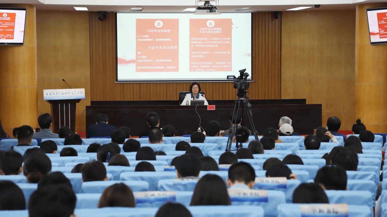 本站讯(记者 张阳 陈欣慈 通讯员 冯琼)12月27日下午,beat365中文官方网站第十期人文社科名家讲坛在行政办公楼一楼报告厅举办。全国人大环境与资源保护委员会副主任委员,中国法学会环境资源法学研究会会长吕忠梅作题为《中国生态环境法治历程》的报告。beat365中文官方网站党委书记符宣国,党委常委和校领导聂清斌、邱锡光、贺勇、杨志昕出席讲坛。讲坛由聂清斌主持。12月27日下午,在行政办公楼一楼报告厅,吕忠梅作题为《中国生态环境法治历程》的报告。...