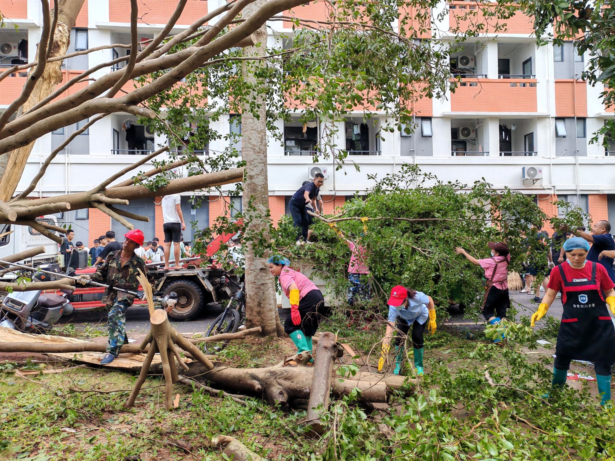 本站讯(记者 黎雨苗 王一钦 梁淑仪)今年第21号强台风“麦德姆”于10月5日在海南文昌一带沿海擦过,给海口及周边区域带来了强降水,造成校园部分区域积水,部分树木倒伏,全校师生积极开展校园清障工作。目前,全校师生平安,校园秩序平稳,校园环境基本恢复。
