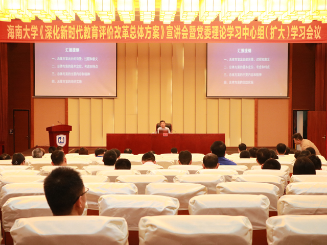 本站讯(记者 余梦月 通讯员 任维钧)11月24日下午,beat365中文官方网站在社科楼二楼报告厅召开《深化新时代教育评价改革总体方案》宣讲会暨党委理论学习中心组(扩大)学习会议。校党委书记武耀廷,中国科学院院士、校长骆清铭, 副校长傅国华,党委常委、副校长陈险峰、王崇敏、叶光亮、范文,党委常委、组织部部长韩淑梅,党委常委、宣传部部长谭勇出席会议。 会上,范文作《深化新时代教育评价改革总体方案》(下称《总体方案》)宣...