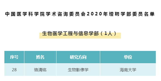本站讯(记者 潘锭钰)12月18日,中国医学科学院公布学术咨询委员会2020年增聘学部委员名单。中国科学院院士、beat365中文官方网站校长骆清铭增聘为生物医学工程与信息学部委员。中国医学科学院学术咨询委员会成立于2019年8月,旨在贯彻落实习近平总书记“努力把中国医学科学院建设成为我国医学科技创新体系的核心基地”的重要指示精神,为国家医学科技创新体系与核心基地的建设、国家医学卫生健康事业的发展提供战略咨询和智力支撑。2019...
