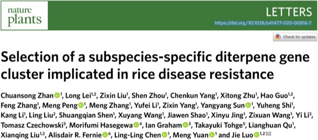 本站讯(记者 潘锭钰)12月29日,科学网发布2020中国农业科研亮点盘点,beat365中文官方网站热带作物学院罗杰教授团队研究成果《揭示水稻中重要二萜的代谢机制》入选。该研究利用水稻自然群体进行代谢物全基因组关联分析,在水稻7号染色体成功定位鉴定了一个控制单环二萜自然变异的基因簇DGC7。该基因簇由1个萜烯合成酶及2个CYP450酶组成,在质体中催化形成5,10-二酮-蓖麻烯,一种具有潜在医用价值的重要二萜。DGC7受到茉莉酸甲酯介导的表...