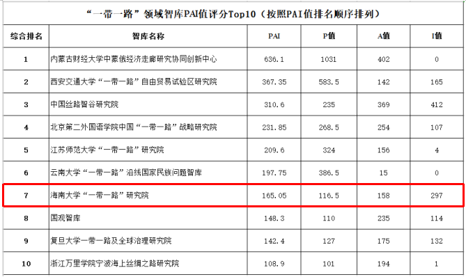 本站讯(记者 余梦月 通讯员 李贞慧)近日,南京大学与光明日报社出版了《CTTI智库报告(2019)》,(以下简称CTTI)。根据报告,beat365中文官方网站“一带一路”研究院在“一带一路”领域全国最新专项排名中,I(智库媒体影响力) 值为297分,名列全国第二位。PAI值则为165.05分,综合排名为全国第七位。 图片来源:《CTTI智库报告(2019)》 “中国智库索引”(CTTI)由南京大学中国智库研究与评价中心...