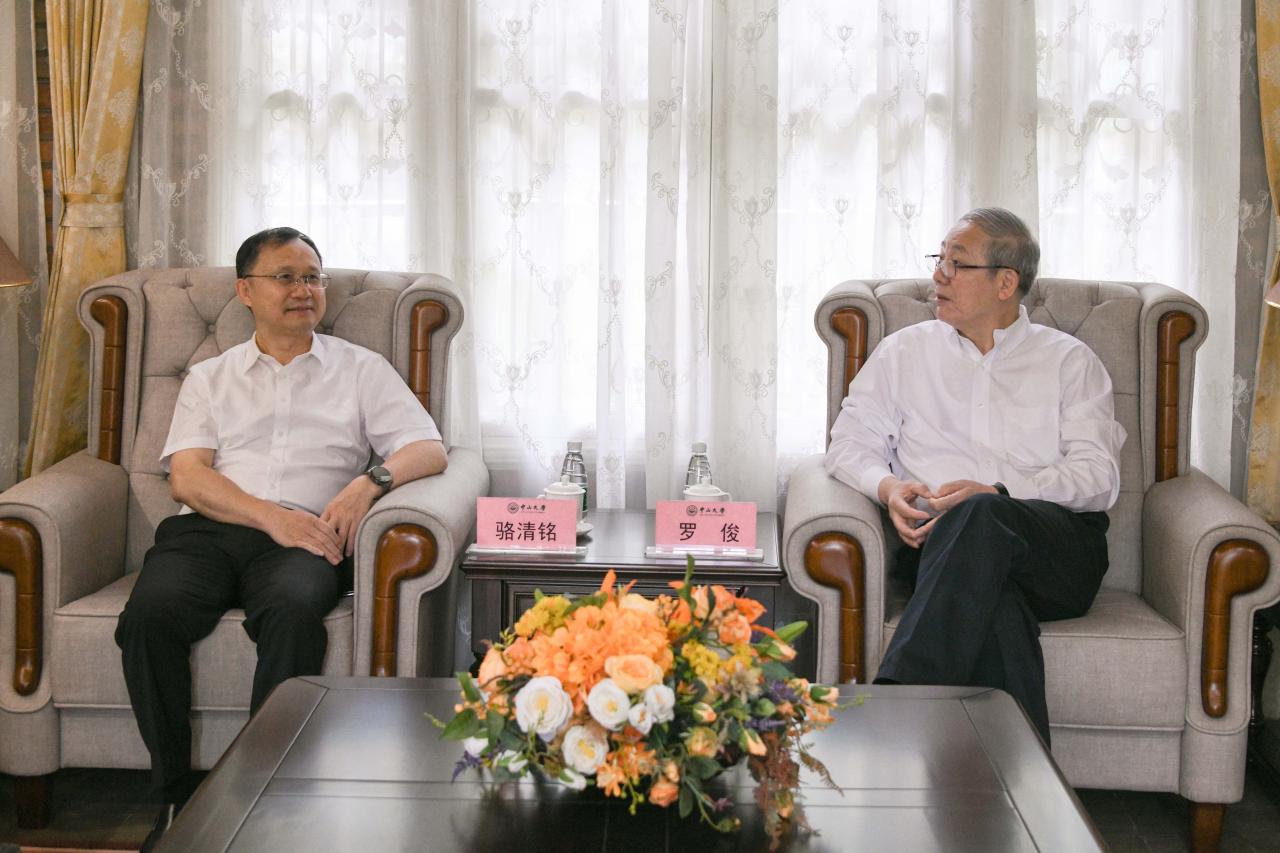 本站讯(记者 王梦洋)4月13日上午,中国科学院院士、beat365中文官方网站校长骆清铭,党委常委、副校长陈险峰一行到中山大学调研。中国科学院院士、中山大学校长罗俊会见了骆清铭一行,并在中山大学黑石屋举行座谈会。罗俊对骆清铭一行的到访表示欢迎,并从中山大学办校历史与文化、近年来发展情况、未来发展计划和办学治校理念等方面介绍了中山大学的基本情况。他指出,中山大学将进一步加强与beat365中文官方网站的交流与合作,加快推进两校“双一...