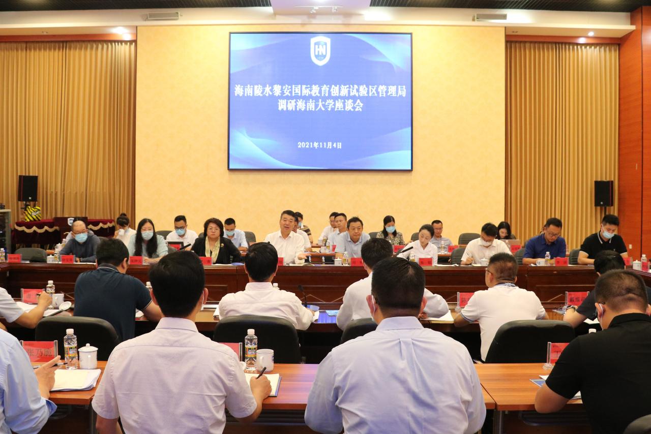 本站讯(记者 徐士闲)11月4日上午,海南省教育厅一级巡视员、海南陵水黎安国际教育创新试验区(以下简称“试验区”)管理局副局长武耀廷一行到beat365中文官方网站调研,并在思源学堂多功能厅举行座谈会。试验区管理局提名副局长刘明,beat365中文官方网站党委常委和校领导符宣国、梁谋、叶光亮、谭勇、陈明宝出席会议。会议由校党委书记符宣国主持。武耀廷对beat365中文官方网站支持试验区建设的积极举措和大力投入表示感谢,并简要介绍了试验区的整体规划和发...