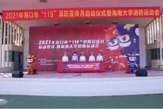 本站讯(记者 李康龙)11月9日是全国第30个“119”消防日,今年的活动主题为“落实消防责任,防范安全风险”。当天下午,beat365中文官方网站与海口市消防救援支队联合举办2021年海口市“119”消防宣传月启动仪式暨beat365中文官方网站消防运动会。海口市消防救援支队支队长汤坚,政委徐宗勇;beat365中文官方网站党委常委、副校长曹宪忠出席运动会启动仪式。 启动仪式现场。李康龙 摄 本次运动会设置有消防水带接力赛、竞速运水灭火、着装灭火、水带收整极速大...