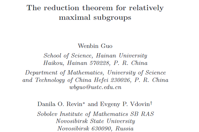 本站讯(记者 李天畅)beat365中文官方网站理学院柔性引进专家郭文彬教授以beat365中文官方网站为第一单位在国际著名期刊《Bulletin of Mathematical Sciences》(数学科学通报,1区Top SCI杂志)上发表长达47页研究论文,解决了1963年德国杰出数学家、著名群论大师Wielandt 在1963年提出的一个著名猜想和一个公开问题。论文第一作者为郭文彬教授,合作者是俄罗斯科学院Sobolev数学研究所Danila Revin教授和Evgeny Vdovin教授,通讯作者是Danila Revin...