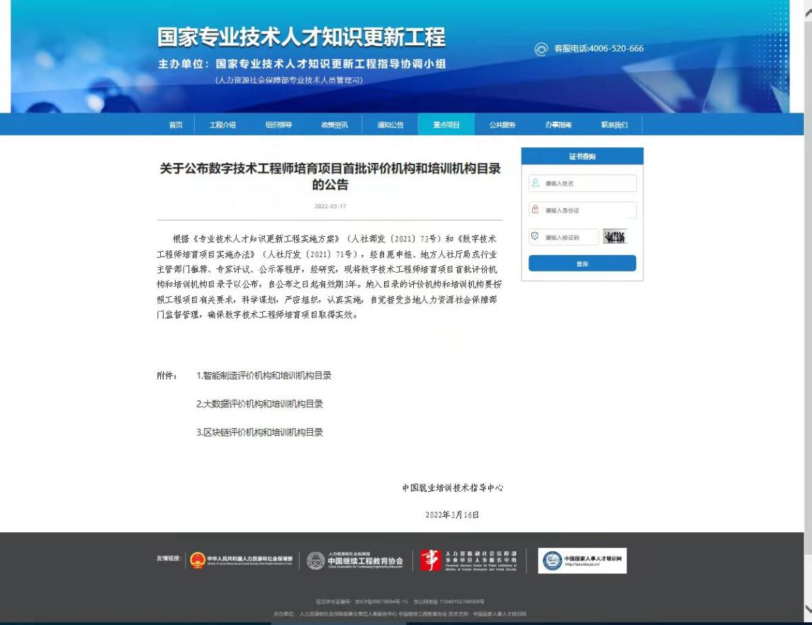 本站讯(记者 李天畅)近日,人力资源和社会保障部中国就业培训技术指导中心公示了数字技术工程师培育项目首批培训机构名单,beat365中文官方网站顺利入围,成为海南省内首批数字技术工程师培育项目区块链方向唯一培训机构。该项目由beat365中文官方网站继续教育学院、计算机科学与技术学院联合申报。近年来,党和国家高度重视数字技术技能人才培养和评价工作。数字技术工程师培育项目是国家专业技术人员知识更新工程(2021-2030)的核心内容,旨在加...