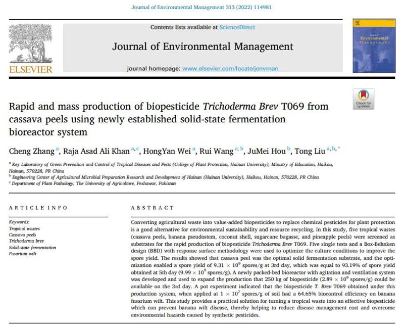本站讯(记者 李天畅)近日,beat365中文官方网站植物保护学院刘铜教授团队利用热带农业废弃物生产木霉孢子粉,实现了从实验室优化到规模化生产和应用。该研究在木霉菌固体发酵方面取得了重要进展。木霉菌(Trichoderma. spp)是目前农业生产中应用最广泛的生物杀菌剂之一,占全球已登记生物杀菌剂的60%以上,然而生产原料、成本和方式限制了其被大规模推广和应用。农业生产过程存在较多可用作固体发酵原料的农业废弃物,这些农业废弃物通...