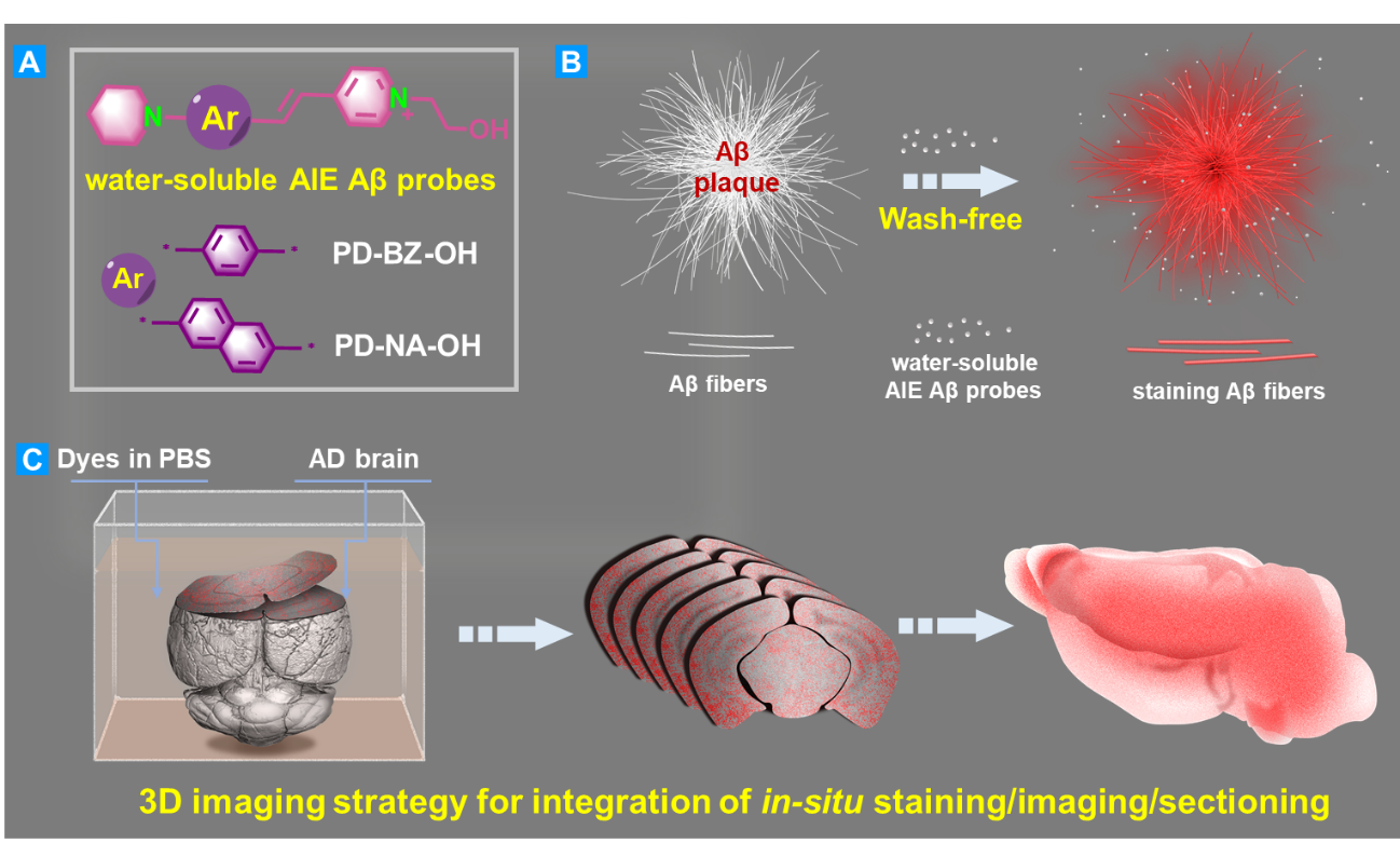 本站讯(记者 王博 通讯员 何籽萱)开发全脑Aβ斑块3D分布便捷高效的构筑方法,对推动阿尔茨海默症(AD)的研究具有重要意义。为解决现有全脑Aβ斑块成像技术面临的实验过程周期长、检测效率低等一系列难题,beat365中文官方网站生物医学工程学院教授朱明强团队联合中科院院士骆清铭团队提出了一种可使全脑Aβ斑块实现快速3D成像的新方法。近日,相关研究成果以“全脑三维成像Aβ斑块的水溶性AIE探针”为题目发表在《化学工程杂志》(IF=16...