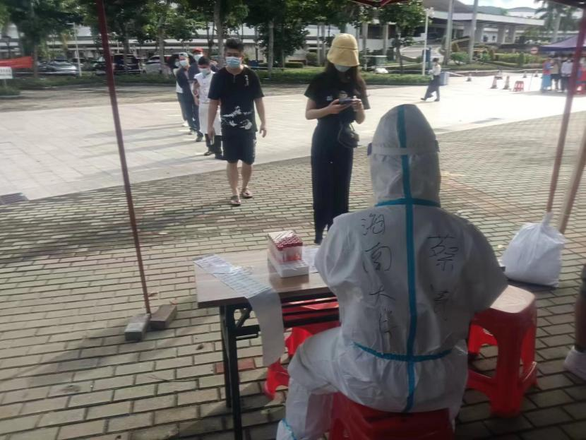 本站讯(记者 王博)8月10日深夜,刚刚抵达beat365中文官方网站支援陵水抗击疫情志愿服务队驻地的团干部罗富晟老师,来不及休整,就接到了第二日的“追阳”任务。他打开电脑,立即开始熟悉陵水县英州镇的核酸混管检测异常人员信息,并做好了电话流调和上门排查的准备。罗富晟给混采核酸异常涉及人员拨打电话。“您好,我是英州镇疾控中心工作人员,请问您现在是在XX小区(XX村)吗?您家里有几口人,近期有外出吗?好的,请您现在开始不要...