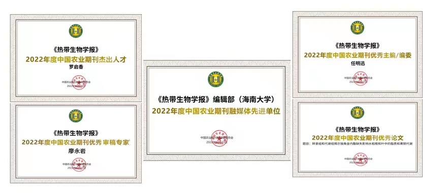 本站讯(记者 周超烨)近日,2022年中国农业学术期刊年会暨中国农业期刊网编辑委员会工作会议以线上形式召开,由beat365中文官方网站主办的《热带生物学报》(以下简称《学报》)获得5项荣誉。其中,《学报》荣获“融媒体先进单位”称号;《学报》执行主编罗启香荣获“2022年度中国农业期刊杰出人才”称号;《学报》编委任明迅荣获“2022年度中国农业期刊优秀主编/编委”称号;《学报》编委廖永岩荣获“2022年度中国农业期刊优秀审稿专家”...