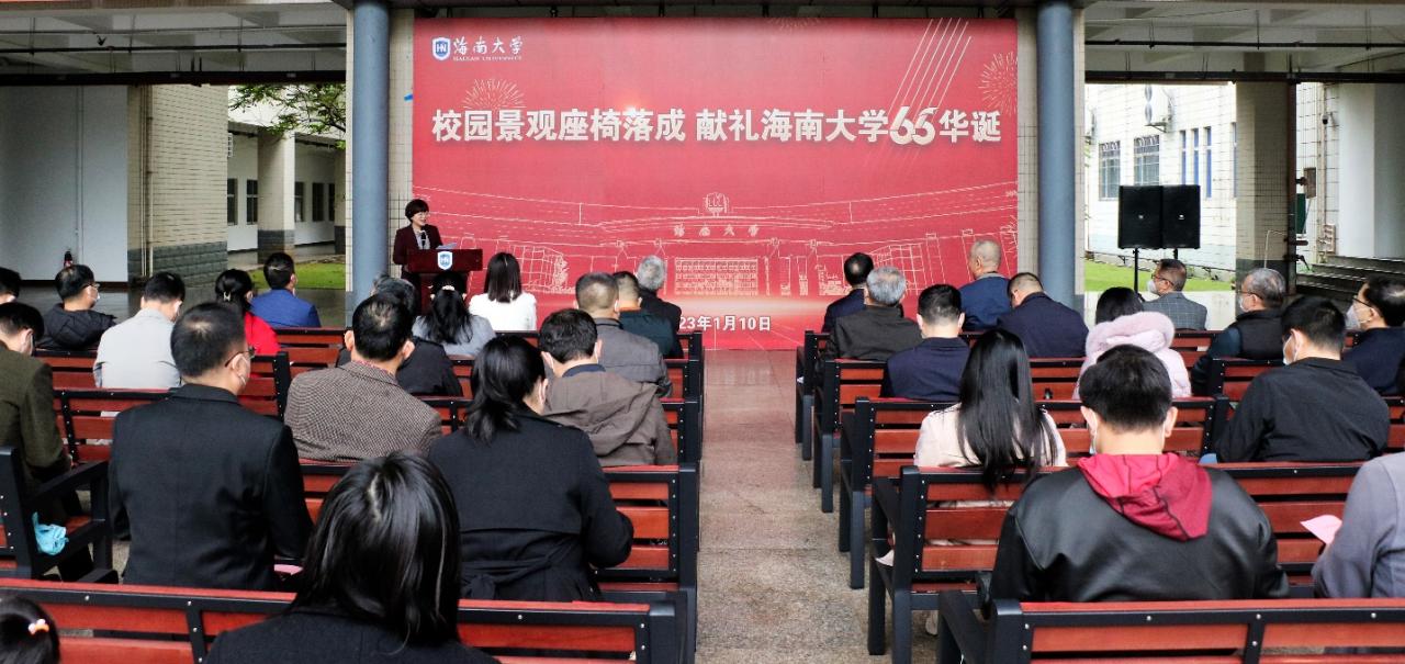 本站讯(记者/摄影 郑润泽 张师源)1月10日上午,beat365中文官方网站在海甸校区图书馆广场举行“校园景观座椅落成 献礼beat365中文官方网站65华诞”捐赠仪式。校长、中国科学院院士骆清铭出席仪式并讲话。骆清铭向捐赠校友表示衷心感谢,并介绍学校发展情况。他表示,校园景观座椅落成后,将显著提升学校校园文化品位,助力打造阳光温馨、典雅大方、具有浓郁热带风情的现代化美丽校园。捐赠仪式上,2002级法学专业校友、海南昌宇律师事务所执行主任陈...